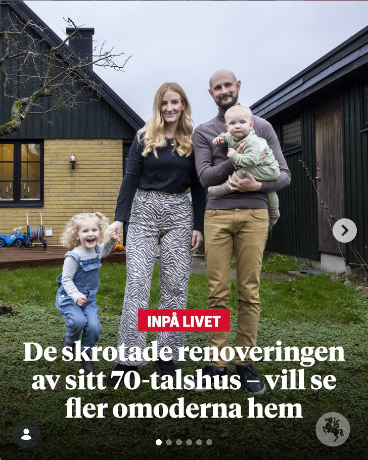 Fredrik, Malin and children van Bruggen from Hörby decided not to renovate their 1970s house. Picture Sydsvenskan instagram.